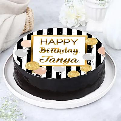 Crafted with finesse, this confectionery masterpiece boasts an elegant design that seamlessly merges aesthetics with deliciousness. Layers of luscious chocolate cake form a delectable foundation, enveloped in a velvety cocoa frosting that promises a taste of pure indulgence. Surrounded by an intricate and heartfelt 'Happy Birthday' message, each slice is not just a culinary delight but a journey through joy, making this cake the perfect centrepiece for a day filled with love and celebration.