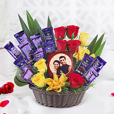 Celebrate a promotion, a new baby, or a work accomplishment with a "Mug Arrangement" stuffed with Mars or Dairy Milk Silk. It’s the perfect blend of utility and indulgence.
