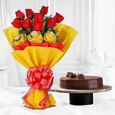 Chocolaty Red Roses Truffle Cake Combo 1/2 Kg