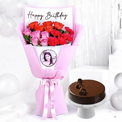 Personalised Birthday Photo Bouquet N Truffle Cake 1/2 Kg